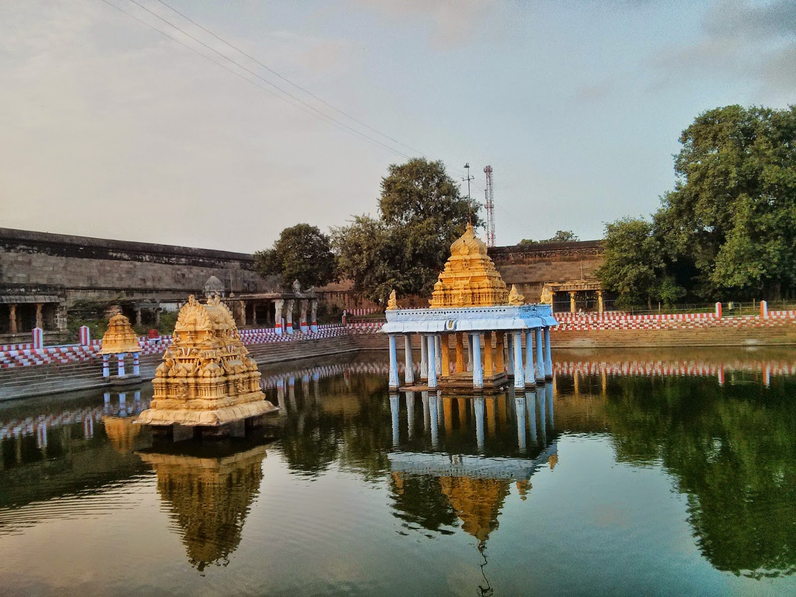 | The tank in the Vardharaja Perumal Temple courtyard |