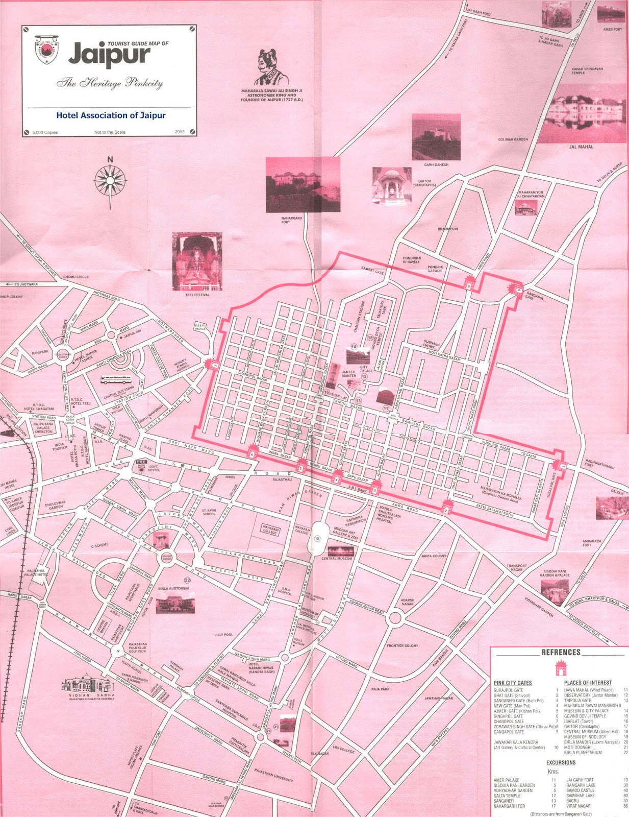 | Map of Jaipur with Pink City boundaries and its gates clearly demarcated |