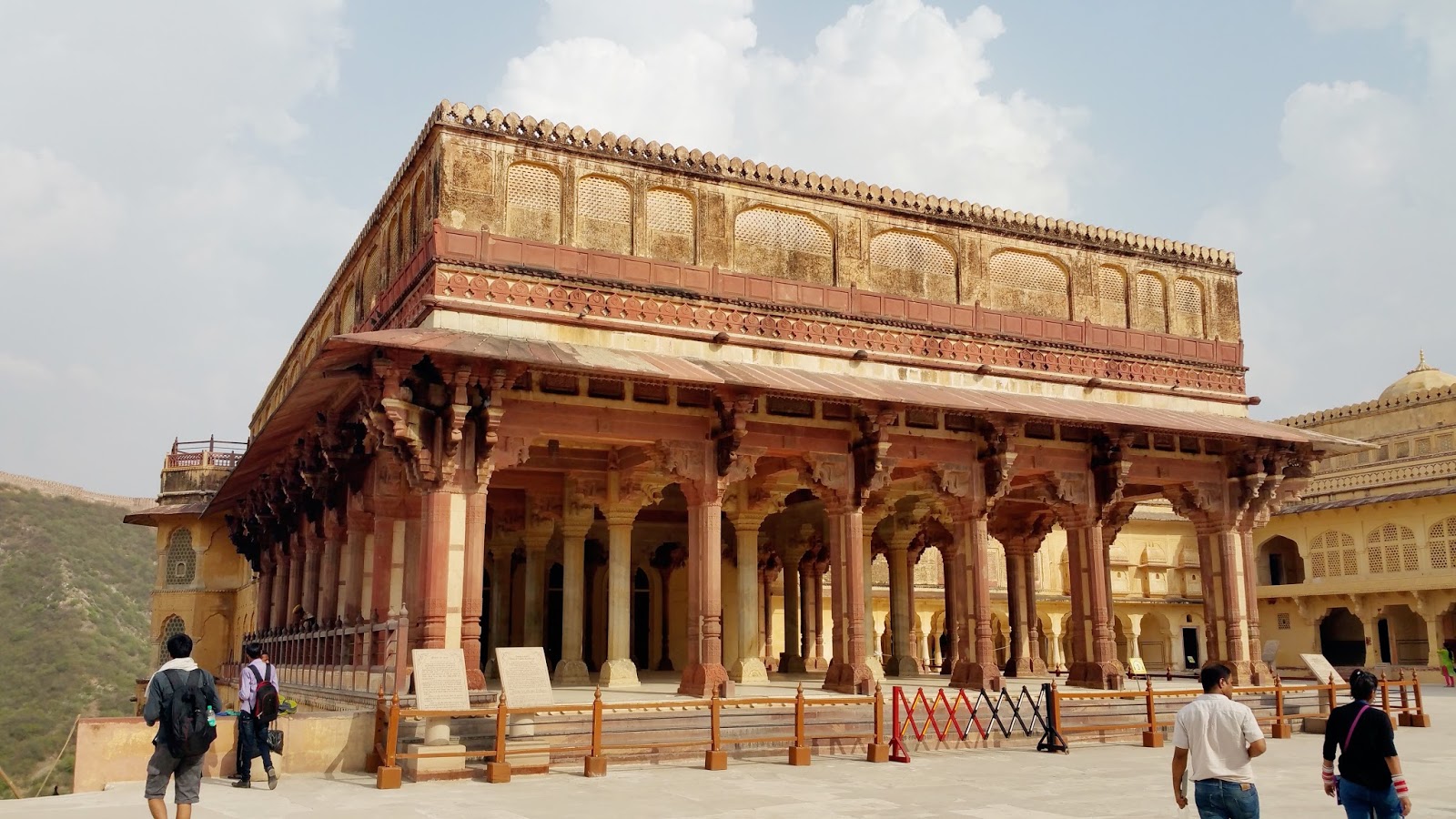 The second courtyard is Diwan-i-aam or Hall of Public. This beautiful structure in Amer palace is an amazing confluence of Rajput and Mughal styles of architecture. Built with a double row of columns, Diwan-i-aamhas 27 colonnades built with marble and red sandstone. Each pillar is exactly same with an elephant shaped capital mounted on top of it.