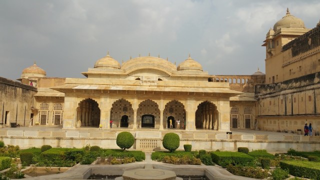Ganesh Pol leads to Diwan-i-khaas which was the private residence of rulers. This section has two main buildings, Sukh Mahal(Hall of Pleasure) and Sheesh Mahal (Hall of Mirrors) separated by a garden laid in a fashion similar to Mughal gardens. Sheesh Mahal (or Jai Mandir) is exquisitely decorated with glass inlaid panels and multi-mirrored ceilings. The mirrors used here are convex mirrors brought all the way from Belgium. These mirrors are designed with colored foils which used to glitter in candle lights. Opposite to Sheesh Mahal is Sukh Mahal which had an air conditioning system and was used as summer residence by the king. The water was drawn from nearby Maota lake and ran through pipes across the Sukh Mahal which cooled the entire edifice. Palace of Raja Man Singh I can be approached from this courtyard. It is the oldest part of this palace fort. The fourth courtyard is the Zenana Deorhi where royal ladies and concubines of kings used to live.