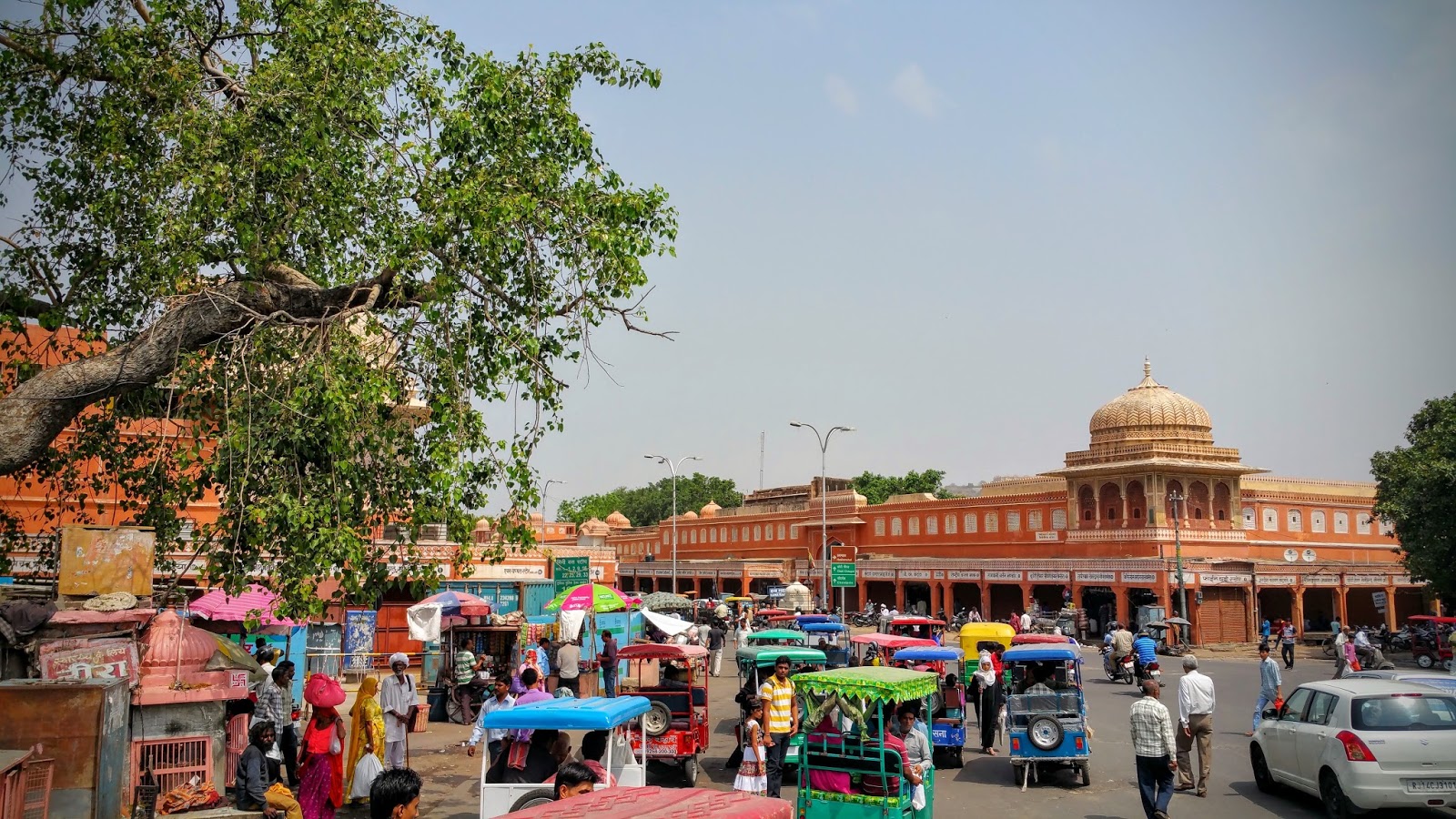 So, we started with Birla Mandir and Moti Dungri, which was the residential palace of Rajmata Gayatri Devi. After that, we entered the pink city portion of Jaipur through New Gate (there are 9 such gates around pink city). Right from childhood days when I used to learn the sobriquets as a part of GK curriculum, I have been hearing about “The Pink City”. It was so exciting and satisfying to finally see it. All the shops with pink exterior lined both the sides of the road with a unique number assigned to each shop as if students in school uniform stand in queue during assembly prayer.