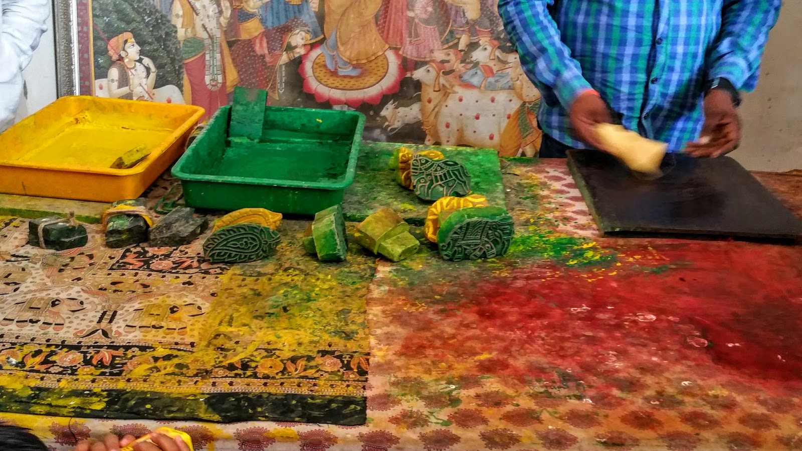 By this time, it was already 12 PM. We proceeded towards Nahargarh fort via Zorawar Singh gate. On our way, we stopped at Rajasthan Kala Mandir where we were given option to buy some Jaipur specialties like bandhani suits/sarees, block painted suits/sarees, sau gram rajai (100gm duvets), lacquer bangles etc. There a gentleman also showed us how block paintings are done with vegetable colors.