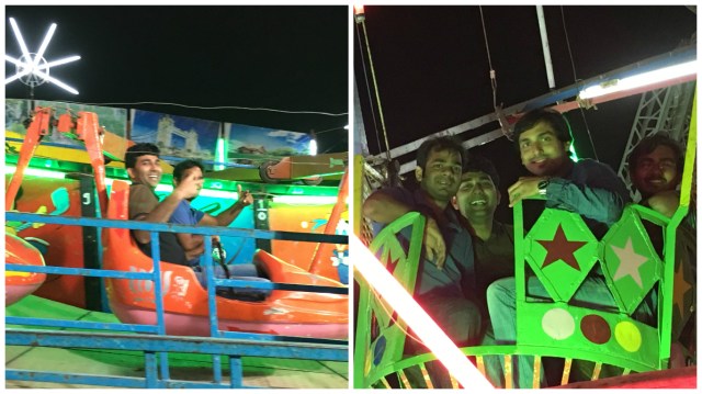 Subodh immediately rushed to take 4 tickets of the giant wheel and Anshu did the same for torpedo. I am faint-hearted and my timid stomach cannot bear the squeamishness caused by gravity. So, I kept myself distanced from these joy rides and enjoyed watching my fantastic four. Once they were done, these guys were interested in Columbus and implored me to join them. Initially I was reluctant, but then agreed and joined the guys. My feet were trembling when I was entering the ride. Anshu and Atishay cleverly sandwiched me between Subodh and Mohit so that I don’t get cold feet and run away. The moment Columbus started moving, my fear started getting better of me and I begged Anshu to let go of me. Despite my consistent begging and foul-mouthing, he didn’t pay any heed. Yeah, he is a real scum J. And henceforth it started. Columbus screeched the pulley beneath it and commenced it’s to and fro. My screaming started and continued throughout the ride and these slimy creatures were making my video and taking snaps of me. Finally the ordeal ended. But I felt confident and happy after that; I had managed to overcome my fear.