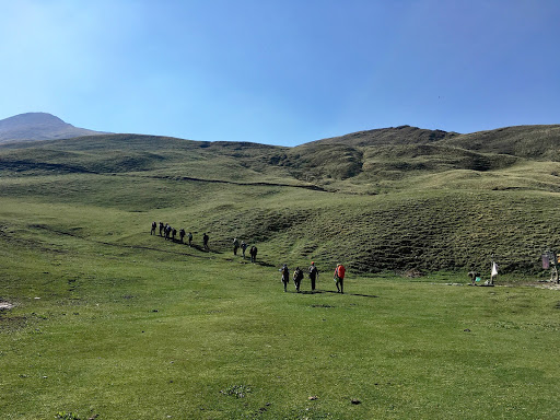 Leaving the Bedni camp site was not easy for me. I used to look back after every 15-20 steps so that I can etch the view in my heart for eternity. The trail disappeared into a saddle in the mountain. Crossing the saddle exposed other side of the ridge which was slightly different. The lush green meadows paved way for rocky landscapes and amber grasses. This place was called Ghora Lotani. Locals maintain that horses used to return back downhill after this place as there was no fodder available for them to graze beyond this point.