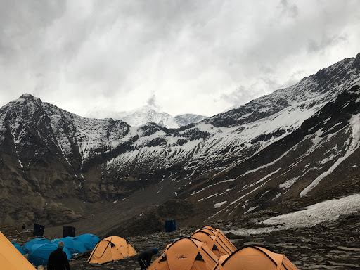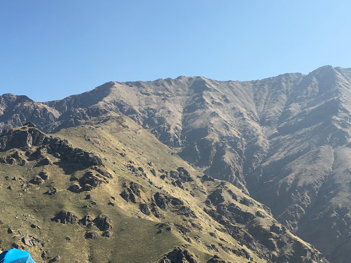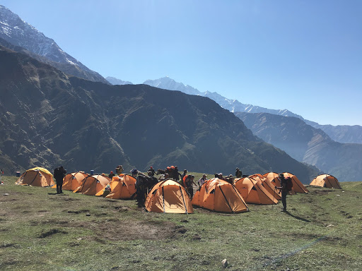 | Bhagwabasa camp site. Notice the cusp at the mountain top – that’s Roopkund |