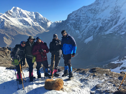 The climb to Kalu Vinayak temple is a steep zig-zag trail. With every turn, we gained significant height and it continued till we reached the top of the mountain where Kalu Vinayak shrine was present. We continued to have the same formation – Krishna with girls at the front, and Pradhanji at the back. It is imperative that this climb is done slowly so that body gets ample time to acclimatize. We reached Kalu Vinayak temple by noon. It was a very demanding trail – long distance, steep climb, cold wind and thin air. Shutterbugs clicked “been-there-done-that” pictures while the rest of us (including me) chose to rest in silence.