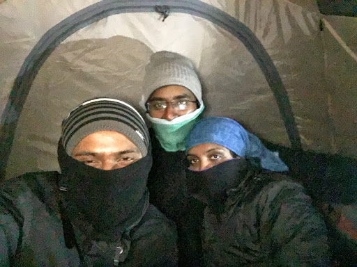 The night was not very pleasant though. The snowfall was accompanied with ferocious winds. It felt as if the tent would fly away with us, such was the might of those chilly winds. But kudos to IndiaHikes staffs; they came to each and every tent and assured us that nothing would happen and they were there for their safety. It means a lot to say “you guys sleep peacefully, we will be awake to watch your back”, but IndiaHikes staffs did. Their consoling words did assuage the fear of some mishap. But somewhere in the back of my head, another fear was cropping up, “will this bad weather allow us reach the summit tomorrow”. I didn’t have an answer to this and chose not to worry about it either.