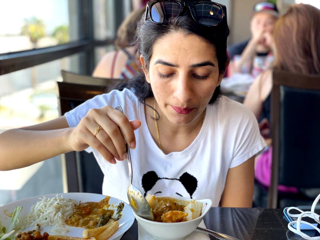 We landed at McCarran airport on September 18th around 10.30 AM and took the shuttle to the car rental center. The queue there was quite long. Someone rightly said – there is never an off season in Vegas. By the time we picked up our car it was already 12 PM. Our airbnb was not very far away from the airport, probably 20-30 minutes’ drive. It was reasonably priced, nice house in a quiet neighborhood. The owner lived in the house itself, so it was very well-maintained. It was 1 PM by now and we were famished. We dumped our luggage and headed to an Indian restaurant for a sumptuous lunch buffet – Pure Indian Cuisine Inc. The restaurant was just across McCarran airport. Not just the food there was good, but it also had a complimentary view of planes landing and taking off. After lunch, we went back to the airbnb and rested for a couple of hours.