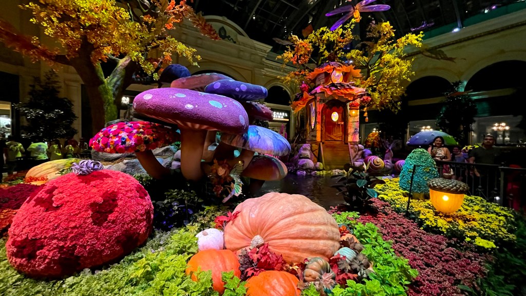 Las Vegas Strip, or colloquially The Strip, is a stretch of Las Vegas Boulevard Road which is known for its concentration of luxurious resort hotels and casinos like Bellagio, MGM, Venetian, Mandalay Bay and many more. At the heart of The Strip is Bellagio where every 15 minutes, tourists are treated with an amazing water ballet. Spurts of water dance to the tune and reach as high as 400 feet in the backdrop of an Eiffel Tower replica. The view is surreal. The fountain show at Bellagio was undoubtedly the best water show I have ever seen. We, then, went inside Bellagio and spent some time at their Conservatory & Botanical Garden. Unlike what the name evokes, it is just a small garden in the lounge of Bellagio, but it packs a punch. Each season, the horticulture and engineering teams of Bellagio transform this place into a showcase of nature’s abundant treasures. Brought to Bellagio from all over the world, most of the flowers, fruits and trees here are natural. The color, the decoration, the scent, the imagination – its awe evoking.