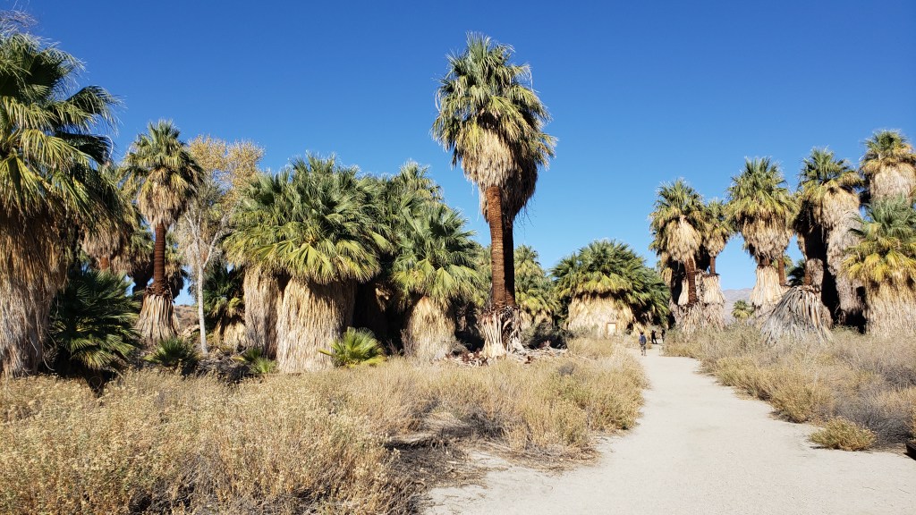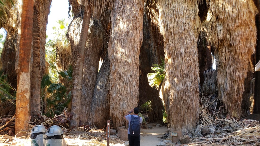 From there, we drove about 20 miles east on I-10 E towards Coachella Valley Nature Preserve. This 17000-acre protected area is home to the spectacular Thousand Palm Oasis which is fed by water seeping out of the San Andreas Fault. The preserve has several hiking trails. Initially, I was not sure about this hike but when we reached the trailhead, I was stumped by the view. In the middle of the desert and nothingness, there were thousands of palm trees bunched together forming this oasis. Who would say no to a unique hike under the shades of palm trees? We did 1.5 miles McCallum trail. There were patches where we had to walk on sand under the sun, but it was largely comfortable. A welcome workout to compensate for the morning intake of 3 pancakes, scrambled eggs and sausages.