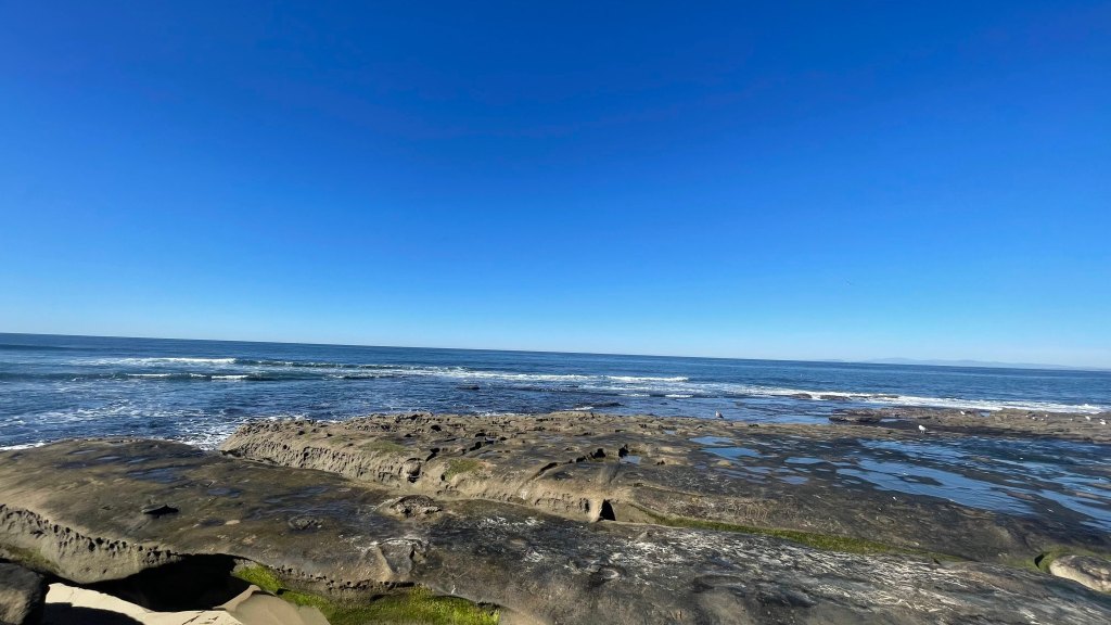 The sky was clear, wind was calm, and the sun was bestowing its warmth. A perfect day to enjoy the beach. So, we headed towards Crystal Pier after checking out of the hotel. This pier was slightly different. It had cute little vacation cabins right on the pier itself. They took “staying near ocean” to another level here 😀 . Plenty of surfers were enjoying a beautiful weekend riding the waves and crashing into them. Just pausing for a while watching them surf was so calming and entertaining. After about an hour, we drove towards La Jolla Cove. As the name suggests, it was a small cove with a beach that was surrounded by cliffs. California sea lions can be found in the waters of the cove and hauling out, temporarily leaving the water to rest on its beaches, cliffs, and bluffs. Besides sea lions, sea gulls were also present at this place in abundance. I had read that scuba diving and snorkeling are popular activities at La Jolla Cove, but we didn’t have time or booking to do that.