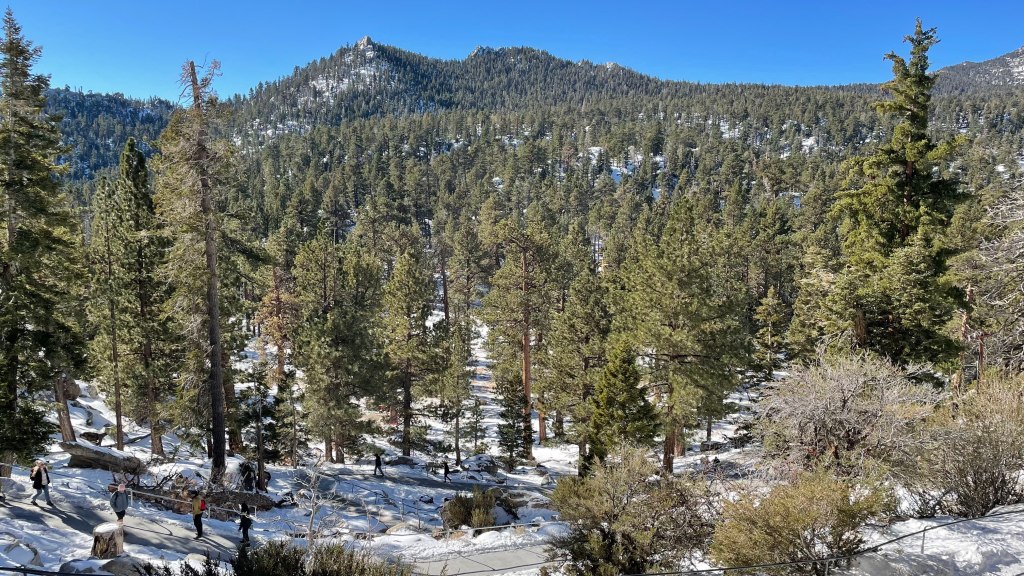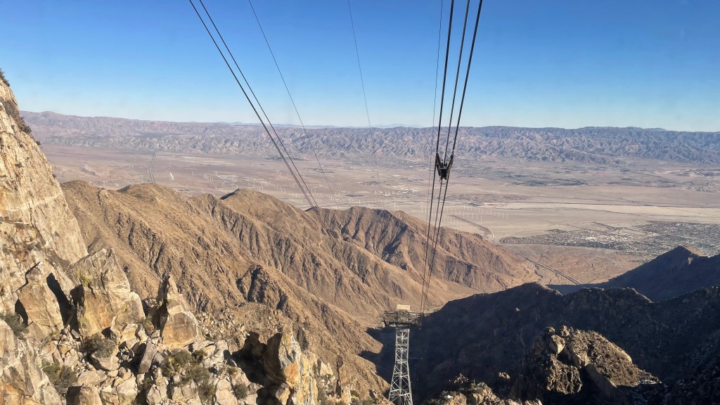 No trip of Palm Springs is complete without riding the famous Palm Springs Aerial Tramway. An engineering marvel, it is the world’s largest rotating tram cars transporting the tourists from Valley Station at 2643 feet to Mountain Station at 8516 feet. This 15-minute enthralling ride passes through five unique life zones, from Mexican Sonoran Desert to alpine wilderness. The tram was pretty big with a capacity of about 80 passengers and rotated 360 degrees twice per trip. At the top was an incredible view of Mt. San Jacinto State Park with plenty of trails taking the hikers away into the alpine wilderness, a breathtaking contrast to the rocky gorges and barren desert lands down below. The tram runs every 15-30 minutes, depending upon the season. Plenty of seats are available. We didn’t have a reservation, but easily got the ticket at the Valley Station. We took 9.30 AM tram for going up and then came down in an hour.