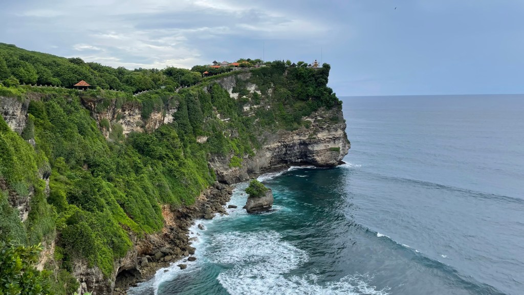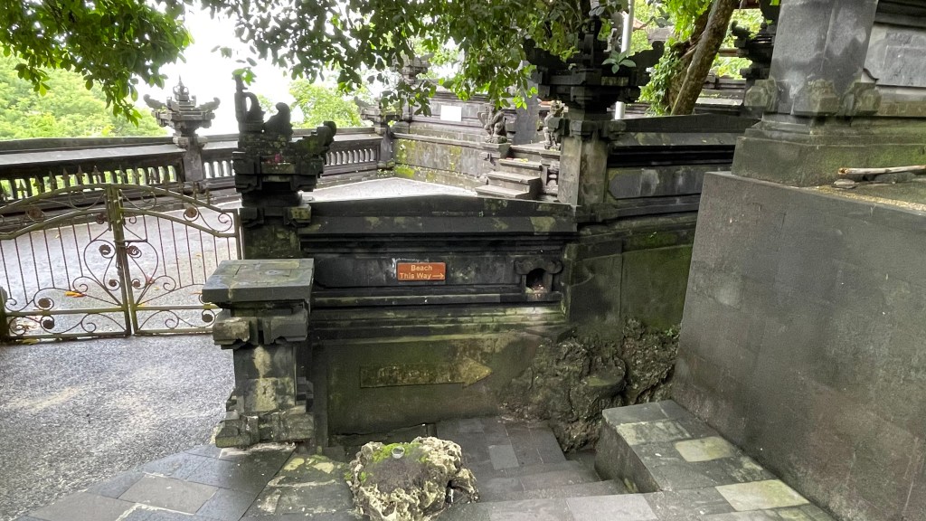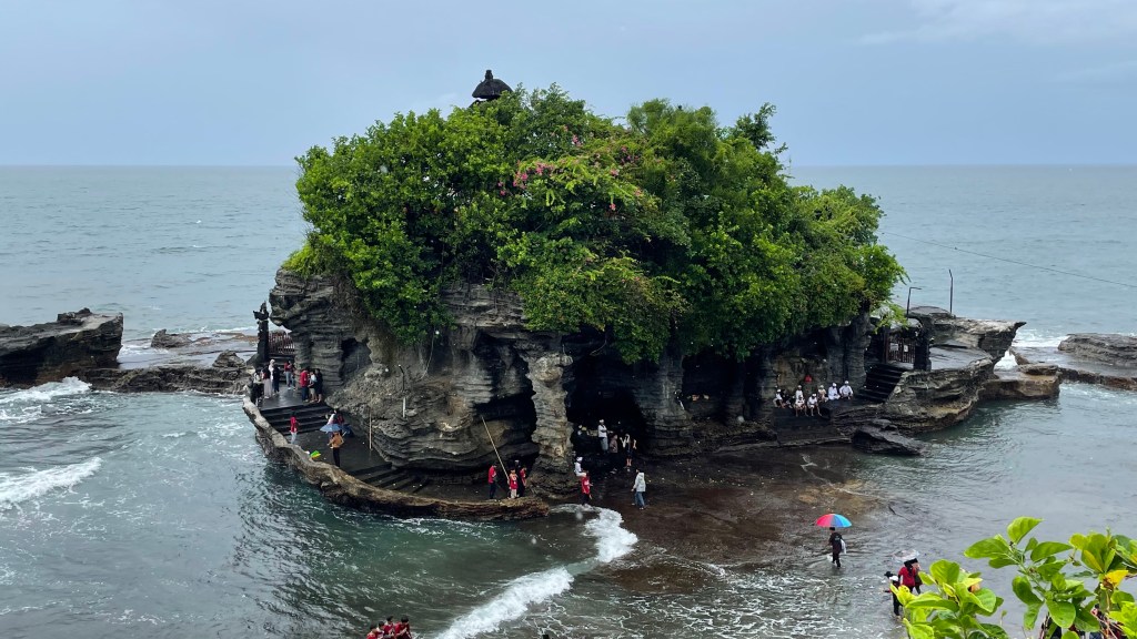 We planned to do Pura Tanah Lot on this day. So, we woke up early in the morning and had our breakfast at the hotel. We booked a cab via Grab and headed to the temple around 9 AM. We got stuck in traffic and it took up 2 hours to reach there. It started raining heavily when we reached. I struck a conversation with our driver Agung and he agreed to drive us around for the rest of the day for 500K IDR. My earlier plan was to go to Vihara Dharma Giri but it was a bit off track and quite far away. So, my discussion with Agung led me to agree on going to Uluwatu Temple instead. As I was discussing all this, rain slowed a bit and two of us got out of our car and headed to the temple.