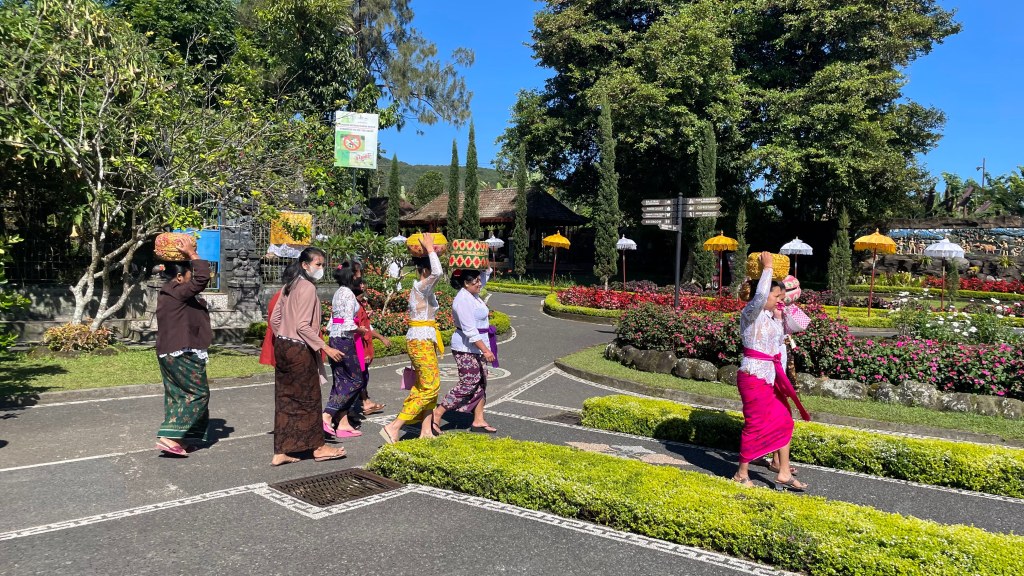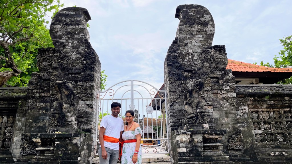 In the Balinese naming system, a person’s rank of birth is reflected in the name. The eldest is given the name – Wayan, second child is called Made, third Nyoman and the fourth child is called Ketut. For the fifth onwards, the pattern is repeated. That’s why you will find most of the people in Bali with these names. Our Ubud villa’s owner’s name was Ketut, the driver who drove us to Pura Ulun Beratan was Nyoman while the guide we took at Goa Gajah was Made. We didn’t get a chance to meet someone who was Wayan. Balinese people also use the initials of “I” and “Ni” at the beginning of their names. “I” indicates that the person is male, while “Ni” indicates the female. I found this in the name of Grab and Gojek taxi drivers.