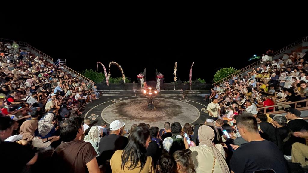 Uluwatu Temple hosts one of the best Kecak dance shows in Bali. Kecak dance is a Balinese Hindu dance performed by about 150 performers wearing checked cloths around their waist and chanting “chak chak” while moving their hands and arms. Usually, scenes from Ramayana are depicted in this dance and are performed in temples and villages all across Bali. The song Devaralan Aattam of the movie Ponniyin Selvan 1 has drawn its inspiration from Kecak dance. The Kecak dance show at Uluwatu was supposed to start at 6 PM and ticket sale at 5 PM. So, we arrived at the temple at around 4.30 PM. Each tickets costs 150K IDR. To our surprise, there was a long queue for the show. Our driver Agung got in the queue to purchase the tickets on our behalf while we explored the temple. This was such a nice gesture on his behalf otherwise we would have wasted a lot of time. Eventually we got the tickets for the second show at 7 PM, not the 6 PM show.
