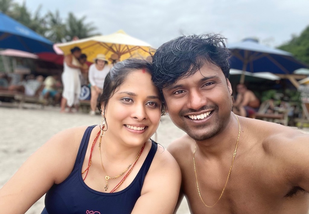After a much needed and delicious lunch we headed towards Crystal beach. There are beach chairs for rent but we gave it a pass. We had our towels which we spread and sat on the white sand. I feel this was much better way to enjoy the beach. We spent a quality time here soaking in sun and sea. I went for a nice swim while Shalini played with the tides.