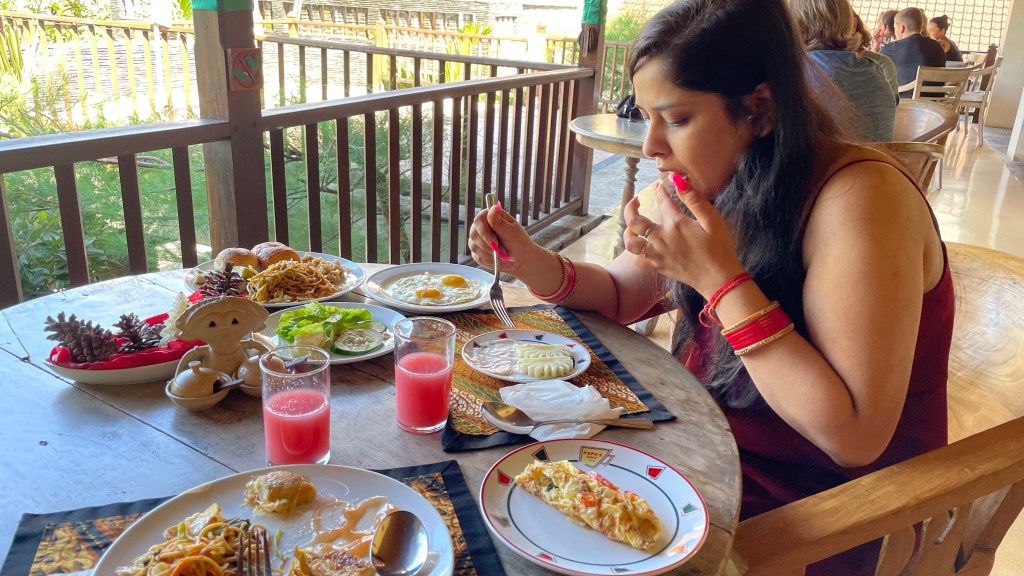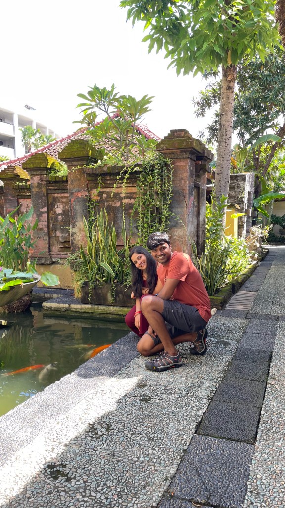 We landed at around 12 PM in Bali. The immigration was breeze as we had taken e-visa-on-arrival from Indonesian eVoa – Visa On Arrival Application (imigrasi.go.id). The payment and document upload had already happened. All we had to do was to get in the line in front of the immigration officer and get the entry seal. I had booked cab through Booking.com which was much cheaper for me (~$7) than quoted by any local. I think only Grab or Gojek (Bali’s Uber) would have been slightly cheaper, but it was a good option for someone new to Bali.