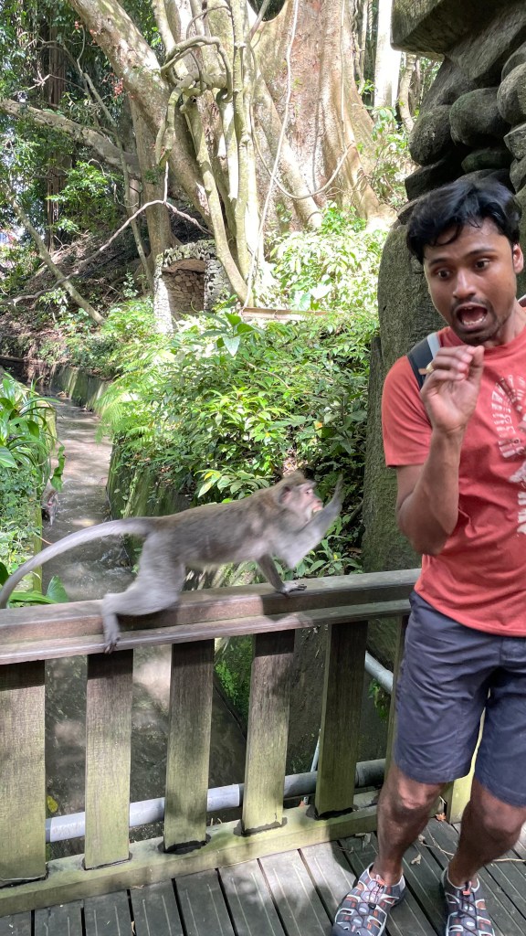 Our cab driver who drove us to Ubud waited for us while we completed the check-in formalities and headed to nearby Monkey Forest with him.