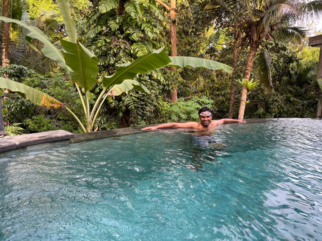 We had booked a private villa for next 4 days in Ubud – Andara Ubud Villa. And oh my god, what a good decision it was. The villa was simply amazing. It was a rustic wooden cabin with a private infinity pool, open-air bathtub and a cozy patio overlooking thick plantation.