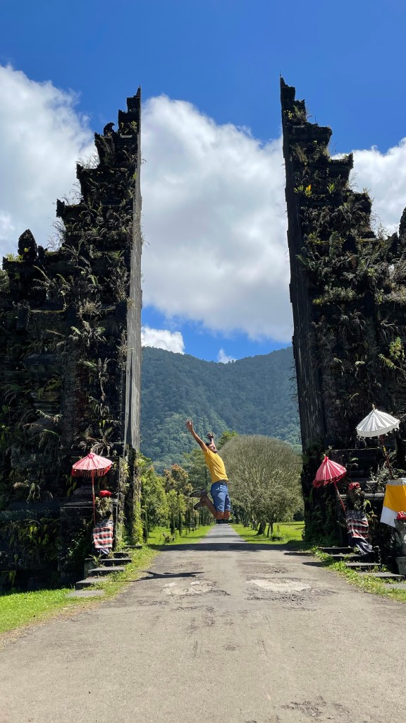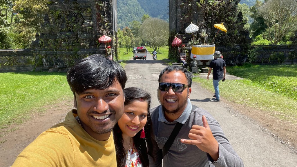 Next, we went to Handara gate which is nothing but a grand entrance to a golf resort. This gate is the traditional split gate found in Bali all across but it is massive and set amidst the lush green vegetation. There was 30K IDR per person ticket to just enter and click photos near the gate. But since it was paid, there wasn’t much crowd. Thanks to Nyoman, we took many pics and videos here.