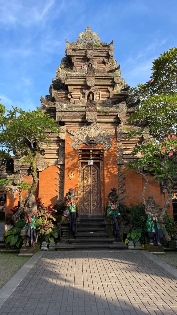 Balinese people are known for their artistry. Beautifully carved temples with intricately sculpted stone structures and vividly colored compounds stand testament to their masterclass. Balinese see their art as a service to God and not look for any global recognition. And rightly so. Even the regular buildings, houses, offices are so richly carved as if it has been some palace. Most of these buildings have twin dwarpals or guardians which are considered to protect from evil spirits.