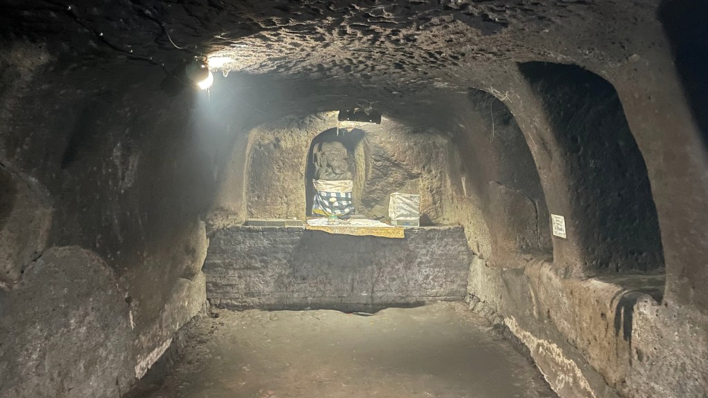 The renovation effort after excavation is quite visible at Goa Gajah. For example, candi betar or the split gate have been built as part of renovation. The original temple was built of sandstone which erodes easily over a period of time; however, the renovations have been done with much stronger black stone. It is said that the excavations happened till 1950s but were stopped thereafter. There may still be many things buried underneath the massive boulders lying around or thick forest surrounding this place. But who knows!
