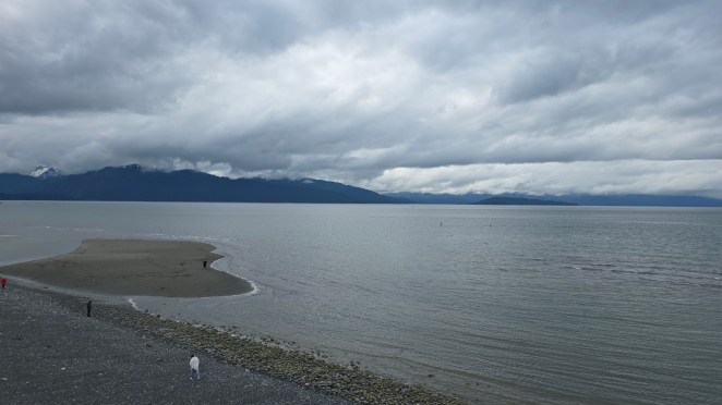 Even though we slept late the night before, the soft morning light over Kachemak Bay woke us up early. The RV park had clean, warm bathrooms—simple comforts that felt luxurious in the cool Alaskan air. Breakfast was light: flaky croissants and hot coffee, eaten with a view of fishing boats heading out into the mist. Today was my turn to take the steering wheel, and around 10 AM, we rolled out of the campsite toward one of Homer’s most iconic landmarks.