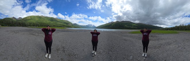 We took a pitstop at Ingram Creek trailhead, a lovely little pullout surrounded by towering mountains that seemed to close in from every direction. This valley was carved by glaciers that once filled the entire space with thick ice. Today the creek flows gently through the delta of silt and gravel left behind as the glacier melted. It is situated right at the southern side of turn of Turnagain arm. This trail is part of Iditarod National Historic Trail (INHT) that was historically used by dog teams to connect the ice-free port of Seward all the way to Nome in Alaska.