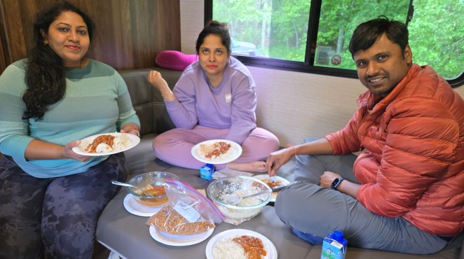 We had freshly cooked rajma chawal in the parking lot at Eklutna lake.