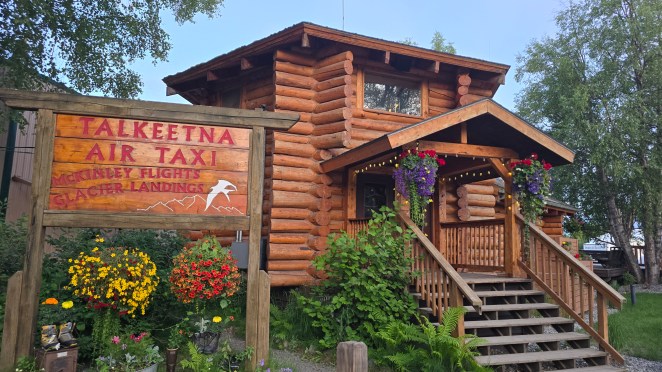 We reached Talkeetna around 5:15 PM. Talkeetna feels like a frontier town preserved from a century ago: dirt roads, rustic storefronts, everyone walking slowly, and laughter spilling out of coffee shops. Most of the buildings here are log cabins, and there is a reason for that. Early settlers used the materials available around them—mainly spruce and birch logs. Log cabins were quick to assemble, insulated naturally against harsh winters, and required almost no imported materials in remote Alaska. Even today, the town has kept this style to preserve its historic charm.