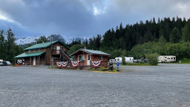 Day 4 began beneath the misty shoulders of the mountains surrounding Stoney Creek RV Campground, a peaceful hideaway just outside Seward. Soft dawn light washed over the spruce forests, and the cold morning air carried that distinct Alaskan smell—fresh, earthy, untouched. We had grown used to Alaska by now… its endless daylight, its quiet power, its gentle unpredictability. And today was one of our longest driving days, so we pulled out of the campsite right at 7 AM.